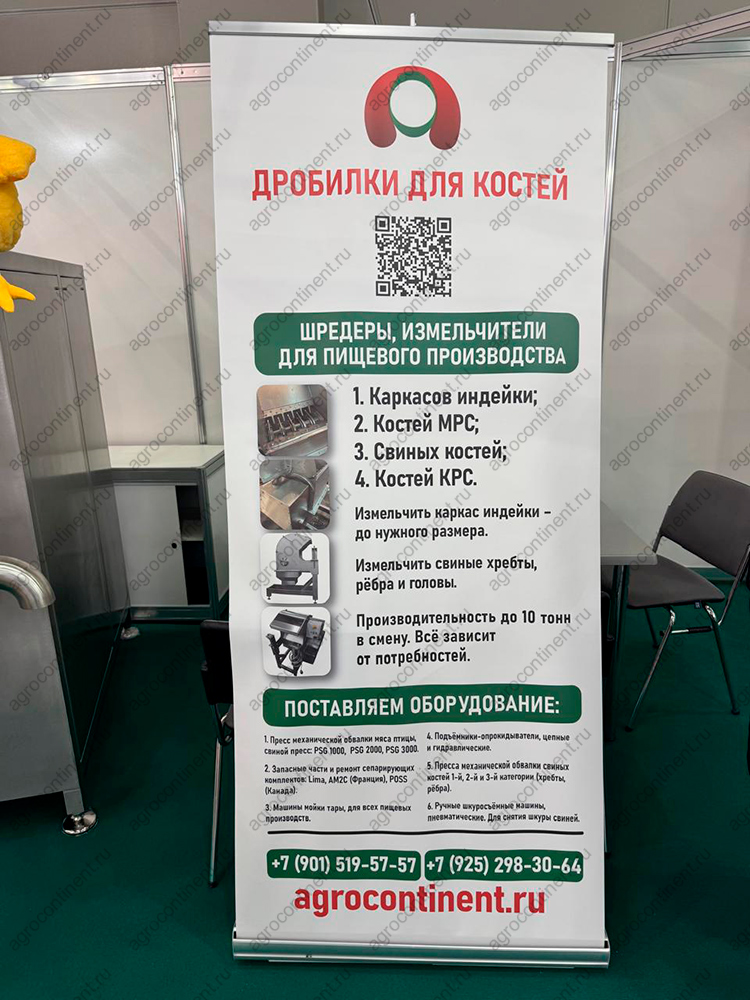 Торгово-производственная компания ООО Агроконтинент, активно работает в пищевом секторе переработки мяса животных с применением новейших инновационных технологий и оборудования, что способствует лучшему качеству продукта на выходе и максимальному результату. Один из самых важных элементов переработки кур, это вторичная переработка после обвалки, когда основное мясо уже срезали, но много ещё мяса осталось на каркасе, но каркас большой и его предварительно нужно измельчить, а уже после отправить на пресс для получения ММО. Измельчения каркаса индейки, это приоритетная задача, что стоит у хозяйств, кто выращивает и перерабатывает индюшиное мясо. Каркас индюка, в среднем от 20-ти см, у индейки немного меньше до 15 см, и его в пресс механической обвалки, этот каркас, не засунешь, он не продавливается подающим шнеком. Нужно измельчить индюка, хотя бы на 4 равных куска, чтобы каркас был 5 см в длину и работать с такими частями на прессе ММО, и с этим мы можем Вам помочь.