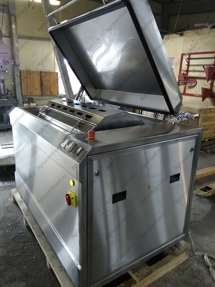 Машина для промывки вешал стандартного размера, а также полок для копчения, которые были загрязнены в ходе обработки изделий из мяса. Помывка идет при температуре до 85 градусов в чистой воде или в моющем растворе, при использовании вращающегося барабана. Средство для мытья дозируется вручную, а наполнение и слив начинаются автоматически по команде электронного контроллера. После основного цикла работы происходит процесс ополаскивания и звучит сигнал.