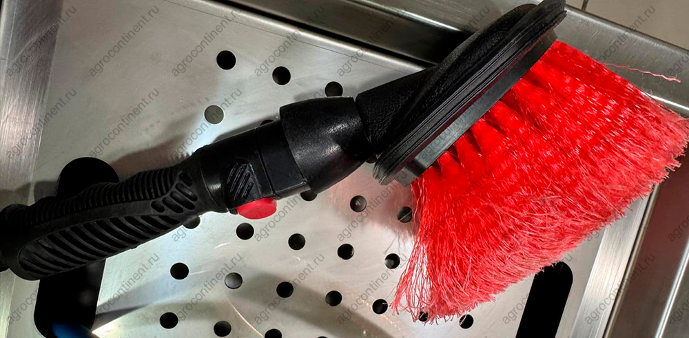 Удобная щётка с клапаном и длинной щетиной служит долго при правильном использовании, а главное это не бросать её с высоты, так как пластиковый корпус может пострадать. Пластиковая щётка с подачей воды превращается в лейку, это когда льётся вода и при помощи ворса смывает пыль и грязь с любой обуви, ботинок и сапог. Все пищевые производства используют гигиену обуви, гигиену ног в чистой зоне предприятия, это требует санпин и необходимо для поддержания чистоты и безопасности на пищевом производстве. Щётка имеет быстроразъёмное соединение, это важно при сборке и комфортной проверке исправности и работы. Использовать дополнительный инструмент, для сборки поста, нет необходимости, всё защёлкивается и собирается без применения ключей и отвёрток, почти готовая конструкция сразу. Купить можно у ООО Агроконтинент, цена будет минимальная. Отправляем всеми ТК во все регионы страны.
