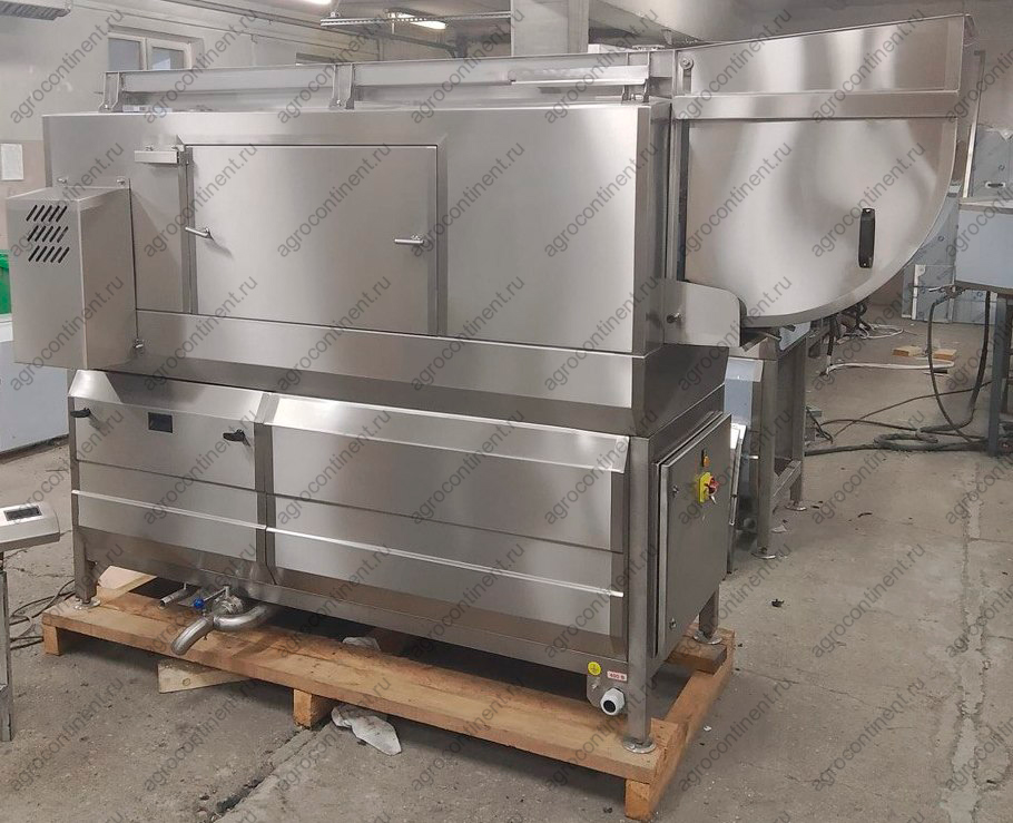Торгово-производственная компания ООО Агроконтинент предлагает со склада в Москве, качественное оборудование для мойка и дезинфекции пищевой тары, такой как ящики, лотки, коробки и короба, поддоны. Мы делаем машины туннельного типа для качественной мойки с ополаскиванием Вашей оборотной тары. Все наши машины изготовлены из самой лучшей нержавеющей стали Aisi 304, которая не боится моющих и дезинфицирующих средств, и срок службы которой не менее 10-ти лет. Гарантия на изделие по закону составляет 12 месяцев, но мы пошли дальше и увеличили сроки гарантии в два раза, что сейчас составляет 24 месяца, а это уже два года, просим звонить, чтобы купить мойку тары из лучших комплектующих. Есть дополнительные опции, которые иногда просят, но в целом, изначально, наша машина автоматическая, она всё делает сама, оператор только подаёт тару и больше ничего делать не нужно.